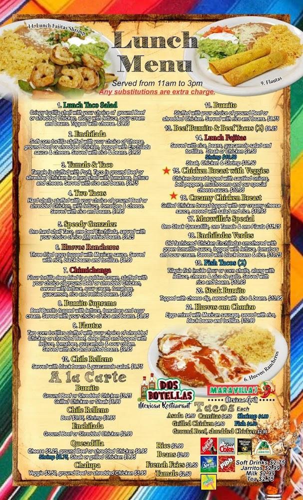 The menu at Dos Botellas offers a delightful array of traditional dishes. Diners can enjoy tacos, burritos, enchiladas, and various appetizers. Vegetarian options cater to those looking for lighter fare. Signature dishes like Vaca Loca and Flaming Cheese Fajitas draw regulars returning for more. Portion sizes are generous, ensuring fillings and flavors satisfy every craving. Local specialties feature prominently, reflecting the vibrant food culture of Mexico. The drink menu complements meals, with plenty of cocktails and local beers to choose from. Happy hour deals invite patrons to relax and indulge.